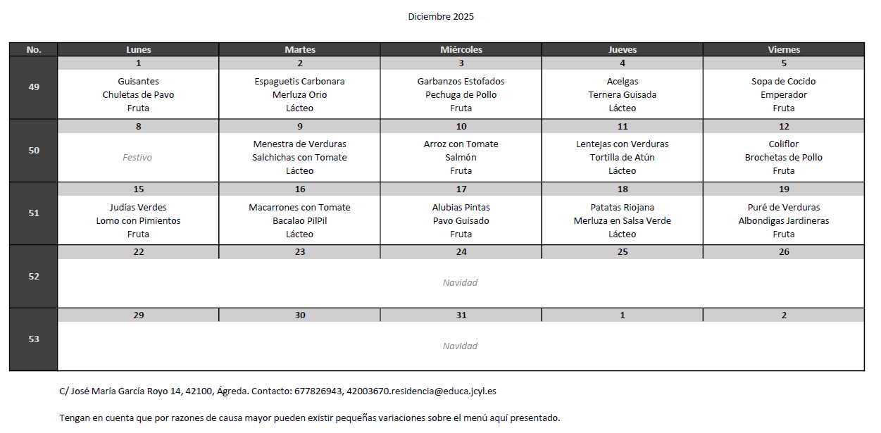 MENÚ DICIEMBRE